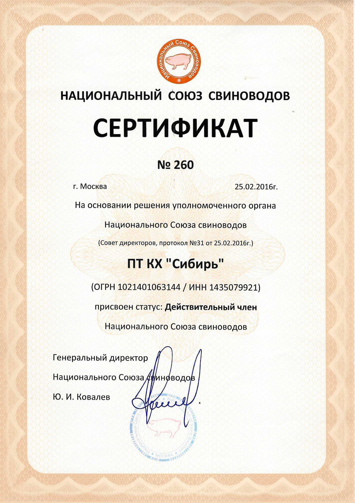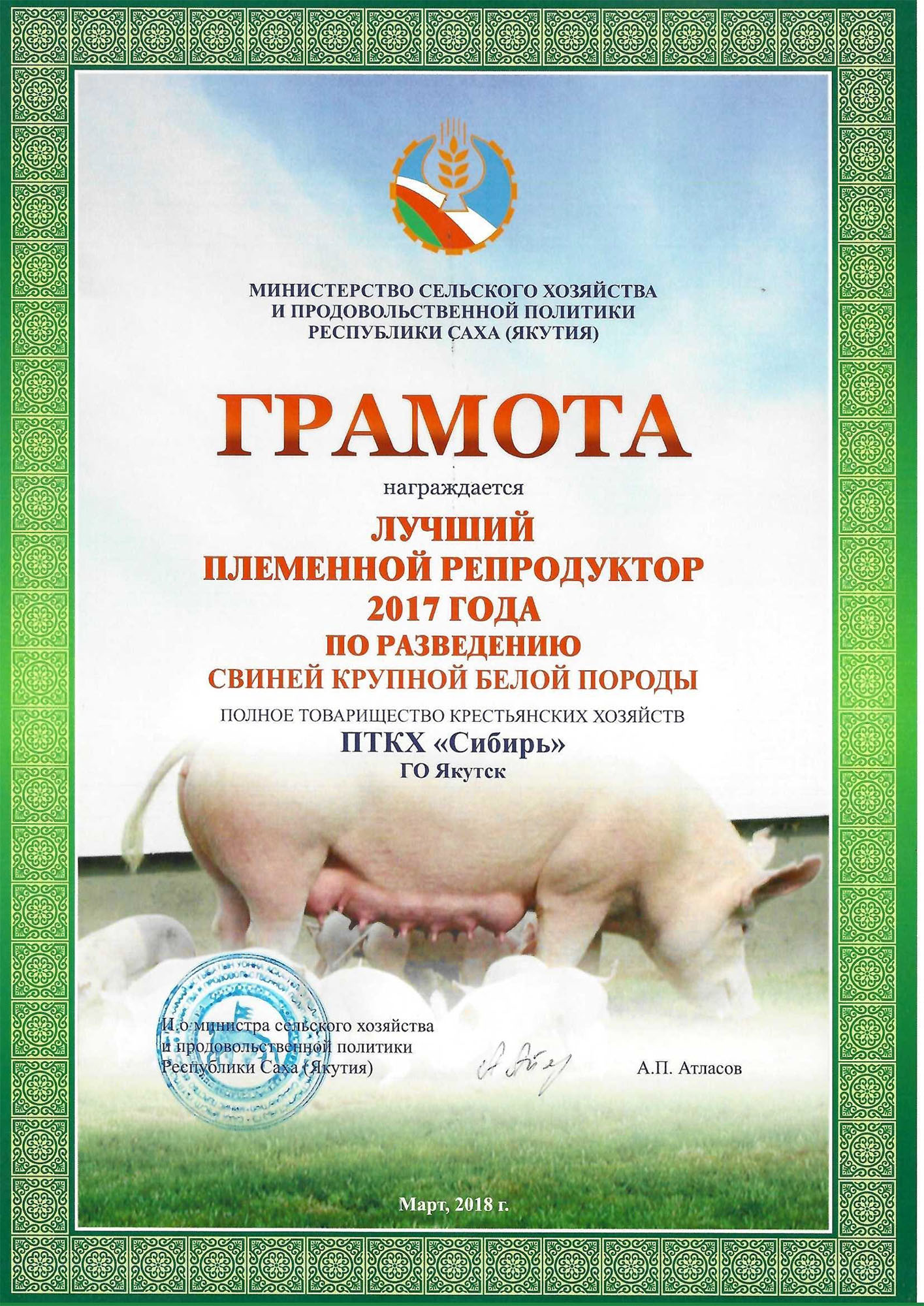Статус племенного свинокомплекса республики был получен в 2001 году, с тех пор подтверждается каждые пять лет, соответствуя целому списку международных стандартов.