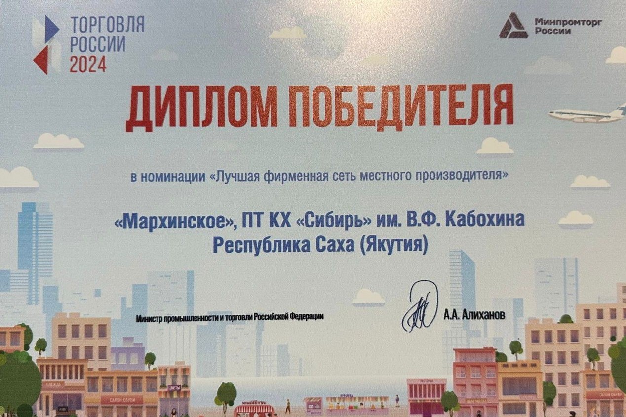 Ежегодный знаковый конкурс «Торговля России», учрежденный по инициативе Минпромторга РФ, приурочен к Дню российского предпринимательства. В 2024 году жюри рассмотрело 2300 заявок на участие. Среди представителей Республики Саха (Якутия), участвовавших в конкурсе, «Мархинское» оказался единственным региональным номинантом.